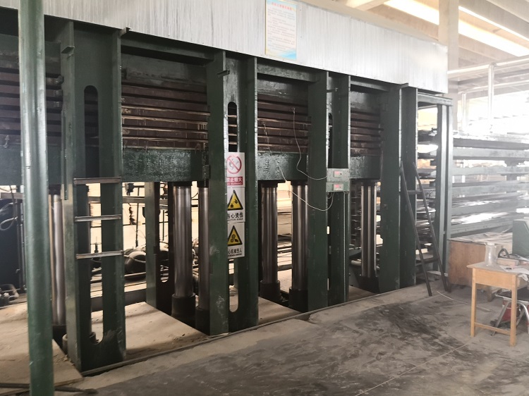 预压设备一般采用冷压,有两种类型:上压型和低压型。高压力型便于装卸板,便于机械操作,因此是最常用的类型。国产设计的印前压板间隔高度(开口锉)为1-1.5m,最大单位压力为1.5MPa,总压力为4500kN,压板宽度为1400mm,长度为2650mm。配备预压机时,应与热压机配套使用,并且可以使用两个预压机提供一台热压机。